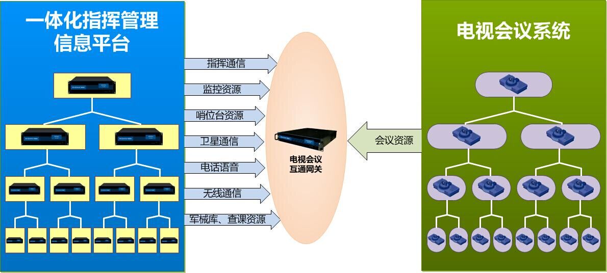 将电视会议、重要部位监控、卫星通信、有线电话、短波通信、超短波通信等系统统一接入、管理,实现跨平台、跨网络的互联互通。