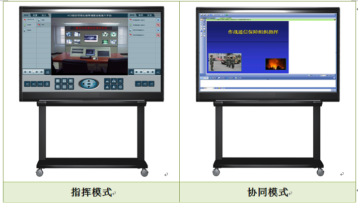 协同指挥一体化终端集成了投影机、白板、幕布、音响、电脑、电视机、指挥调度终端等诸多指挥交互和数据协同的功能。它内置处理系统及多个核心功能模块,信息综合处理能力强大,集中解决了作战指挥中远程音视频沟通,各种格式作战文档高清晰显示,视频文件播放,现场音响,屏幕书写,文件标注、保存、打印和分发等系统化会议需求;同时还内置电视接收功能和环绕声音响,满足指挥所内的闭路信号引入和声音外放。