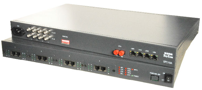 SPC10A可以通过拨码切换,来适应不同的场景。通过光纤传输时,可以提供1+1光口通道保护;将程控语音,2100HZ的磁石及多路以太接口和N路E1打包传输;
