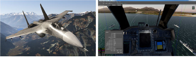 基于UNIGINE顶尖的渲染效果,可根据日光、夜视、红外等各种光线效果和气象条件,营造多个极度接近真实视觉的复杂战场环境,并做实时切换变化背景。不论是超音速飞行时的鸟瞰画面加载,或是海面前行时的风急浪高效果,还是广袤葱郁的植被材质表现,都在其图像生成器的产出下显得与真实世界感受无异。