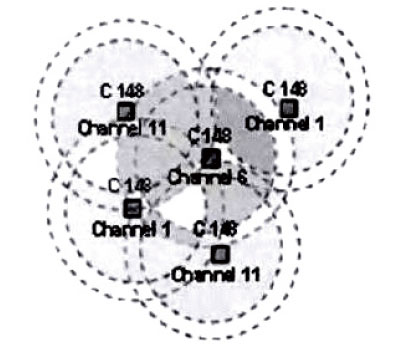 在多点对多点模式的网络中,每一个AP的收、发信息时均使用相同的信道,所有的AP 接收和回程也使用相同的载频,如图3所示,每个AP采用的信道均是Channel 6。