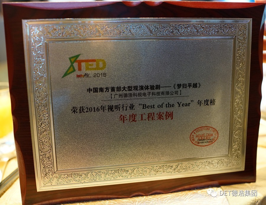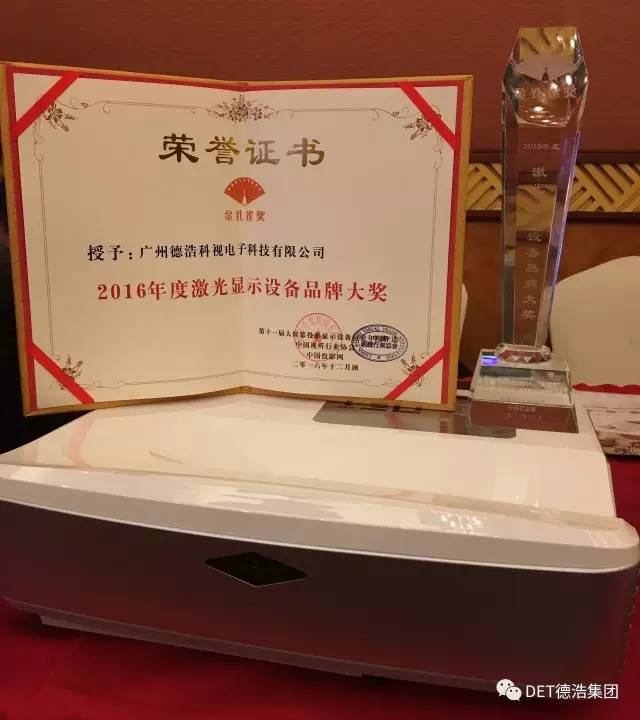 在过去的一年中,DET激光投影机表现优异,不仅完成了西安《12.12》中国第一部大型实景沉浸剧、济南泉水博物馆、首届中国贵州(隆里)国际新媒体艺术节等大型项目,更荣获了“2016年度激光显示设备品牌大奖”、“2016激光投影机十大品牌奖”等多项荣誉。