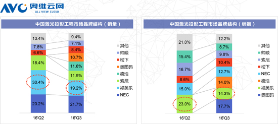 16年Q2、Q3视美乐工程机销量位列第一、二(数据来源,奥维云网)