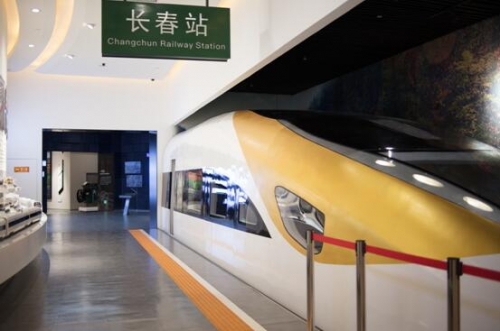 二楼展区主要展示长春有代表性的企业与事件,如一汽集团、长春动车、长春电影制片厂。