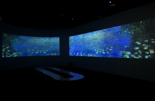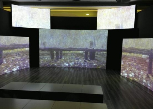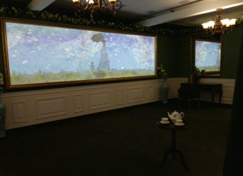 在不久前结束的新莫奈印象南京站的展览中,展览分为7大主题展区,分别为“印象的曙光”、“日出的印象”、“弥漫的天空”、“邂逅爱情”、“印象的色彩”、“灵感的源泉”、“秘密的花园”——通过AVANZA 激光工程投影机实景还原莫奈在法国的工作室;多台AVANZA WU6融合应用,通过其高清晰度与色彩还原度等优越性使观众挥挥手就可以看到莫奈晚年杰作《睡莲》真的在你面前绽放,仿佛与莫奈一起置身一个世纪前的池边;将莫奈的《日出印象》中的小船按比例制作,用油画布做装饰,采用AVANZA 激光工程投影机的地面互动投影方式,使画面与地上的镜面相互交融,感觉到人在画中游。