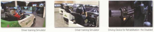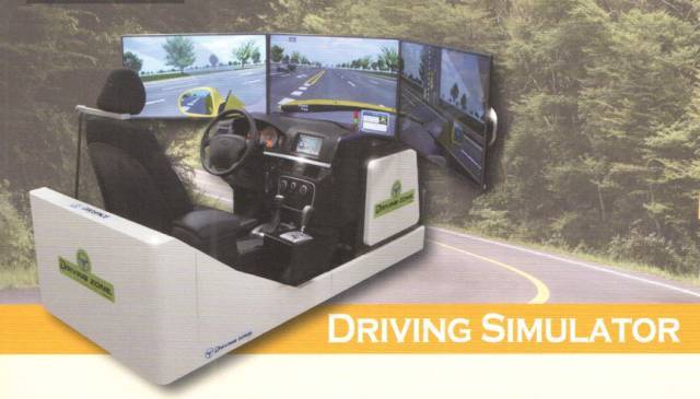 该系统外形上完全还原了汽车驾驶室,有座椅、油门、刹车、离合器、方向盘、排挡、仪表盘、空调系统,还有点火系统用的钥匙等,与真车驾驶室一模一样。在仪表台上方安装有摄像头,有三面环绕记录操作实景的显示屏,学员戴上与设备相连的VR眼镜,就可以进入模拟场地,进入实景训练。