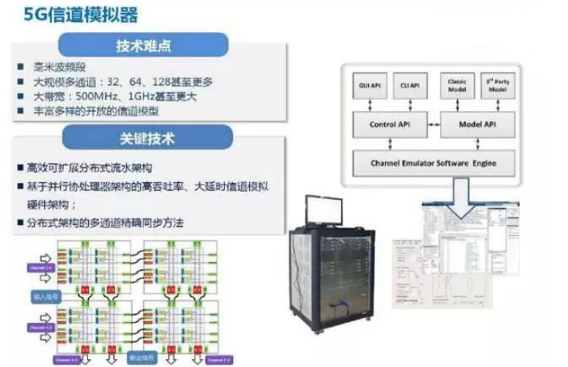 5G信道模拟器将在多通道(64、128甚至更多)的基础上,实现500MHz以上的更大带宽,覆盖6GHz以上的更高频段,支持丰富多样的5G信道模型。目前国际上现有信道模拟器在工作频率、通道数和带宽等关键指标上无法满足5G需求。