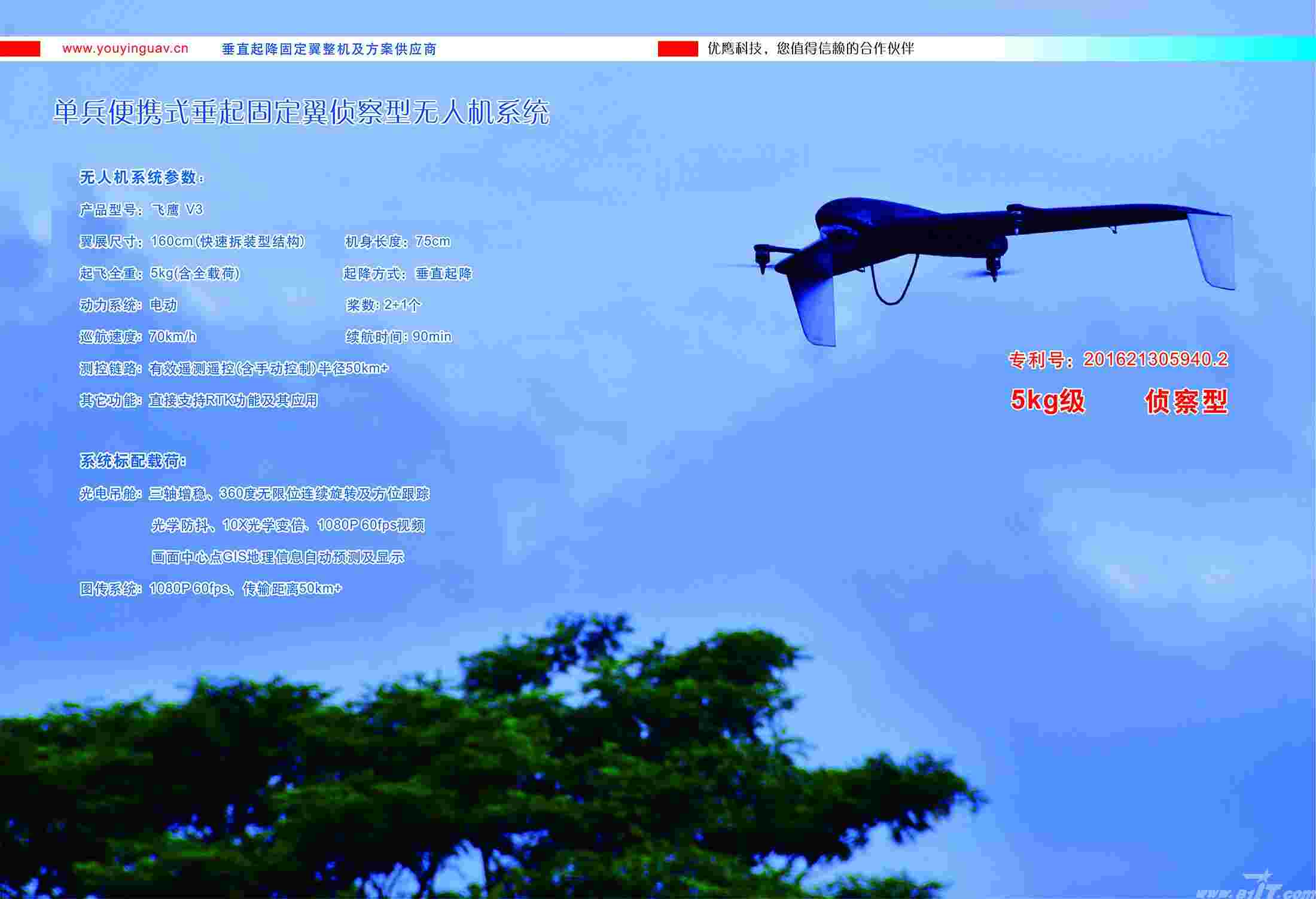 单兵便携式垂起固定翼无人机侦察型系统