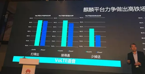 当手机在高速运行的环境中,由于受多普勒效应、频繁切换、列车车厢的穿透损耗等影响,手机通话质量、上网速率会大幅降低,一直是移动通信领域面临的巨大挑战。据本次发布会介绍,华为麒麟970针对各种复杂的通信场景进行了深度优化,选取中国、德国、日本三个高铁最发达的国家,进行了超过40万公里的实测和优化,让用户在高速运行的高铁上可享受“打得出、接得通、不掉话”的优质语音通话。