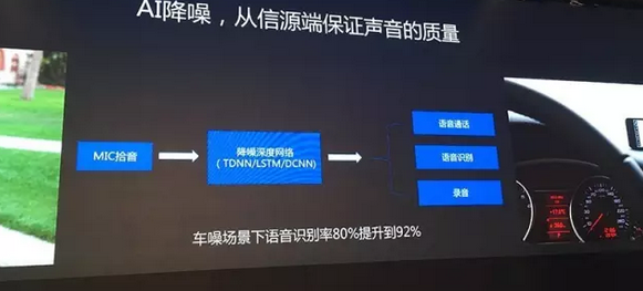 此外,麒麟970支持AI降噪技术,利用深度学习算法,有效抑制非稳态噪音,增强语音信号,提升语音识别在恶劣环境下的识别率。尤其针对驾驶场景,在车速很快(如 120 千米/小时)、车内噪音很大的情况下,大幅提升语音识别率。