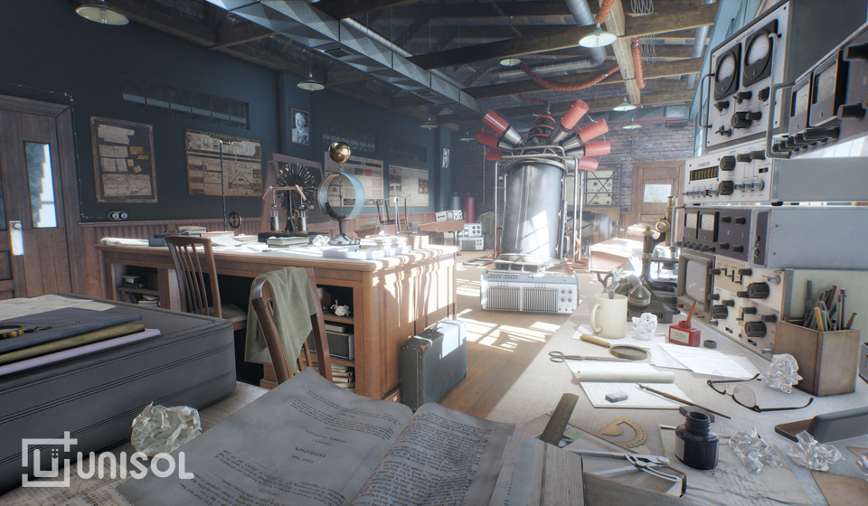 此次展会,UNISOL带来的虚拟现实内容都备受追捧,其中以VR教室尤甚。VR教室的画面处理应用了最新实时光线追踪全局光照技术。它能在屏幕空间内每一帧的时间单位内精确计算出这种全局光照,同时考虑到光和介质本身的性质,保证高质量输出效果。这使得美术人员可以在编辑时能立刻看到最终的光影效果,完全取代了以往重复修改光照设置并长久等待的离线烘焙方式。8k分辨率、随意切换景深和运动模糊效果,让你的视觉更加真实。