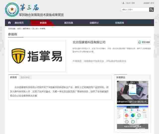 虽然是第一次参加“军民融合发展高技术装备成果展”,但指掌易科技带来的“移动安全工作空间”和“军队安全终端解决方案”顺利登陆网上展厅,并引起了我军多个部队信息安全部门人员的极大兴趣。纵观561家参展商,指掌易是唯一一家移动安全领域产品提供商;在936项参展项目中,更是唯一能够解决部队移动设备硬件、应用和数据安全的全案项目。