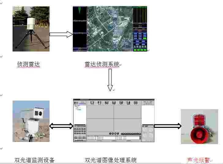 双光谱视频采集系统通过响应雷达侦测系统获取目标区域的视频信息;数据流程如下: