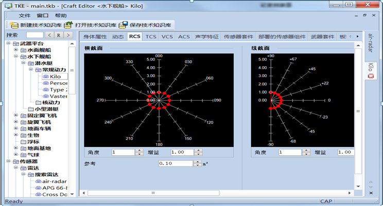 装备建模工具提供专业、细致的向导式参数配置界面。相比其它装备模型编辑,其最大特点是模型可以做到非常精细,按照物理特征(长宽高等)、动态特征(速度、加速度等)、自身反射特征(RCS,TCS,VCS,ACS)以及所携带的传感器、武器、电子对抗、通信等装置来进行参数录入,许多特性都可以使用动态曲线来定义和修改,达到了非常精细的程度,可完成各种分辨率仿真系 统的要求。