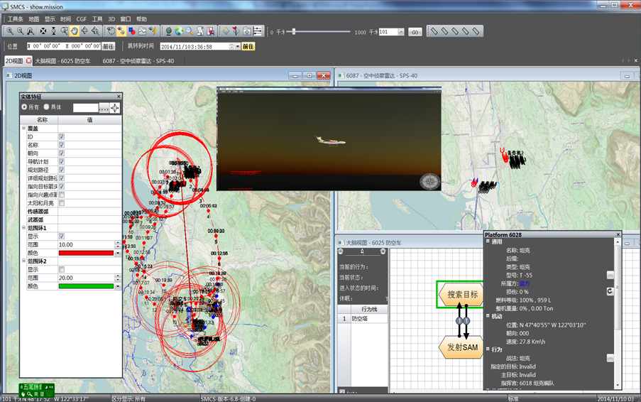 MAXSim是我公司自主研发的新一代多用途仿真平台系统,该系统采用先进的GBB技术和DMAS系统架构,实现了巨大实体数量(4-100万个)的实时仿真,它具有精细的装备建模、基于状态机的行为建模和强大的系统运行管理功能,MAXSim仿真平台支持模型建立、想定制作、仿真运行、数据分析等仿真的全过程,提供了装备建模、行为建模、想定制作、运行监控等工具,并且提供SDK以扩展系统应用。