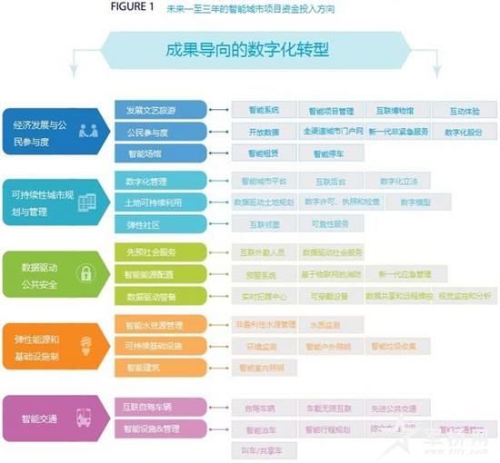 IDC已经确定了41类在未来1-3年间将获得最多资金投入的智慧城市项目(见图1)。
