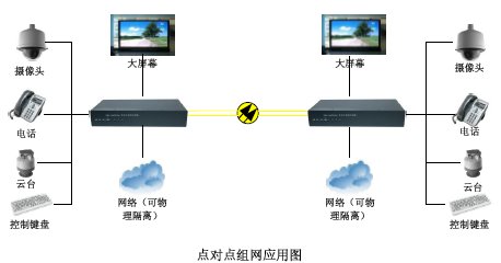 点对点的应用,通过光纤直连,可实现对视频、语音和控制信号的双向传输,可通过插盘或遥杆实现对对端云台的控制,支持视频和语音绑定功能。