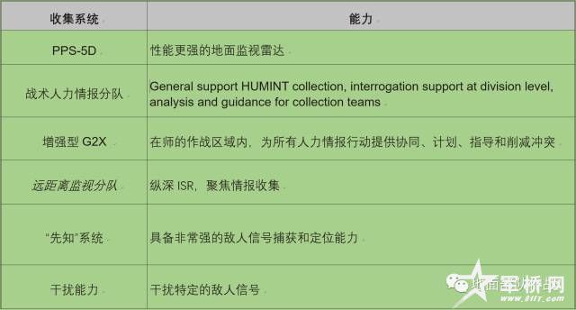 师编制装备表中的要把G2X编进师参谋部门,以在全频谱作战中促进人力情报的协同和同步,包括师以上层级的资源。