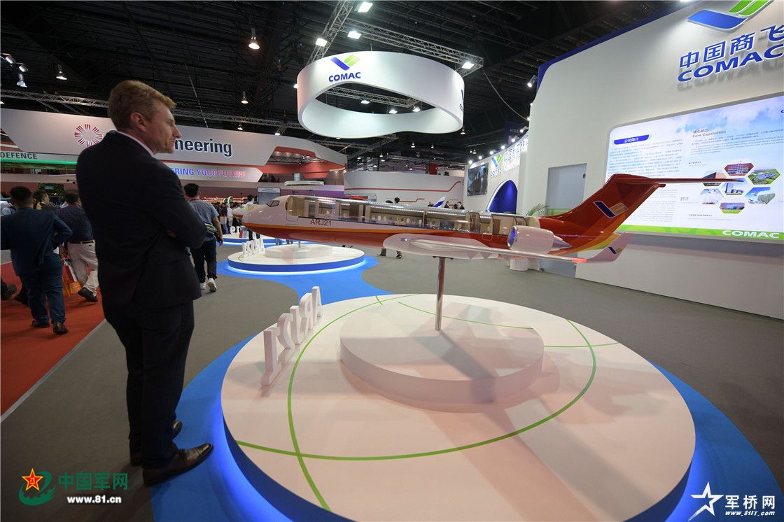 航展现场,中国商飞、中航技、中航国际等公司的展台前围满了前来咨询洽谈的交易商。军用机方面,中国企业展出了“枭龙”战斗机、L15高级教练机、直10武装直升机、运9E军用运输机等产品模型,并在静态展区增设了“翼龙”Ⅰ、“翼龙”Ⅱ无人机全尺寸模型,全方位展示了中国自主研发的新一代军用飞机的性能和优势。民用机方面,中航工业带来了“新舟”60、“新舟”700两型客机,运12E、运12F两型通用飞机,以及民用直升机AC311、AC312等产品,中国商飞展示了ARJ21、C919和CR929等飞机模型,受到国际社会关注。