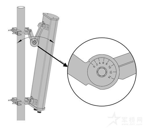 到了高处,怎么才能往下照呢?聪明如我的你,一定想到了,很简单啊,天线本体往下倾斜不就OK啦?
