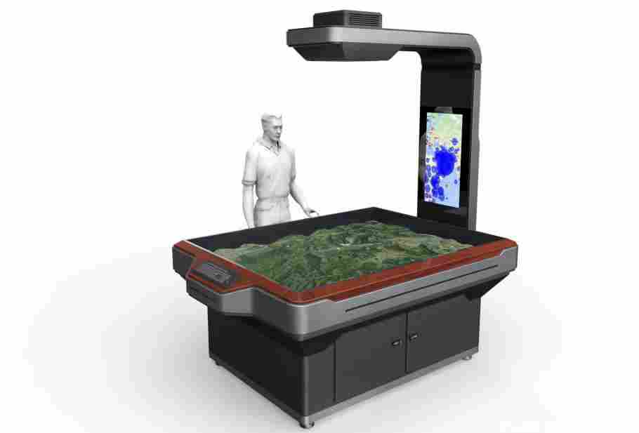 给定地形模拟演练需求指通过自动化构建机器,利用已知高程数据,AR沙盘可自动构建出与实景地图相同的地形。