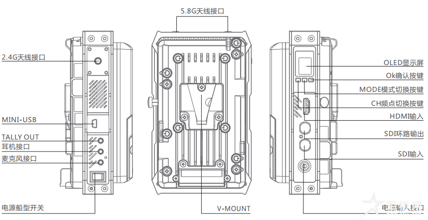 2. Tally输出,无线对讲--支持Tally信号输出和无线全双工对讲,最远达300米