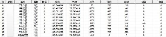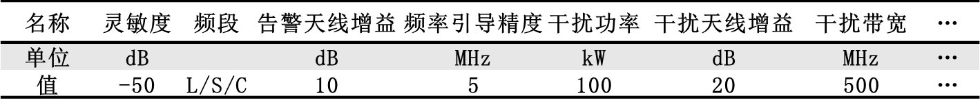 其中,红方11、12、13号电子战飞机的告警及干扰典型参数如表2所示,蓝方20号地面防空雷达系统的典型参数表3所示。