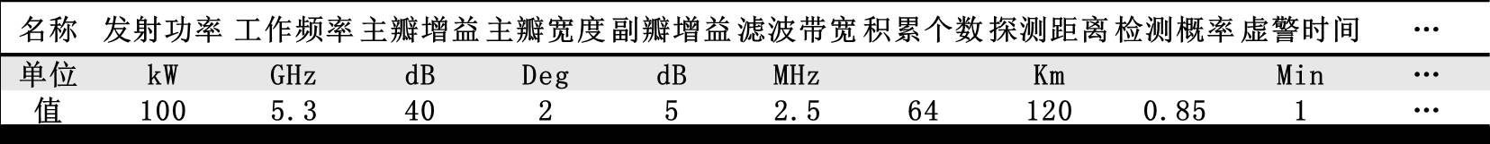 表3 雷达典型仿真参数
