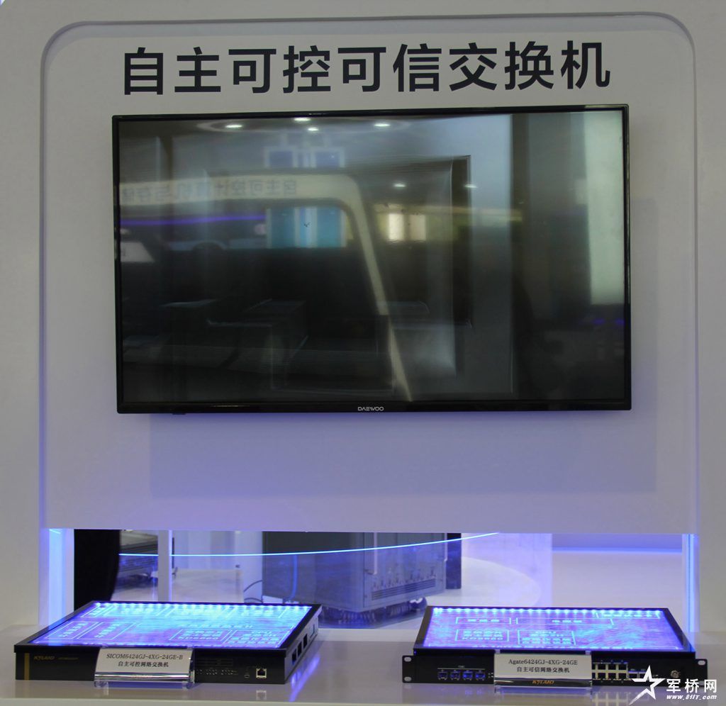 东土军悦自主可控网络交换机,硬件采用东土自行研制的KD5660交换芯片,该芯片被装备发展部评定为国内唯一一款自主掌控级(A级)交换芯片、控制CPU采用龙芯2H,是目前国内自主可控程度最高的通用CPU芯片;软件采用了东土军悦自主研制的网络协议栈、网络操作系统采用科银京成自研的“道”操作系统,设备已在军方大量使用。