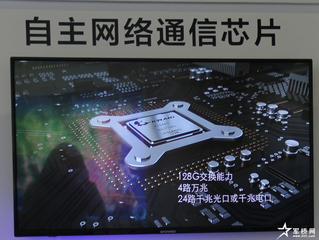 KD5660芯片采用40纳米工艺,具有24个GE、4个10GE接口,支持主流L2/3交换功能,该芯片是目前国内唯一从芯片设计、流片制造、封装测试,完全在中国大陆完成的自主可控交换芯片,因此被军委装备发展部评为最高自主可控等级(A级)。