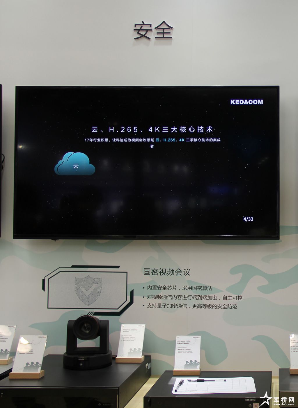 ZGKD以“焕新视界 开启云视讯时代”为主题,全方位展示了全新云视频会议系统、视频监控系统、显示与控制系统、AI实战应用等端到端的军用产品及解决方案。作为横跨视讯与安防两大领域的技术领先型企业,ZGKD一直致力于服务国防建设,目前应用已覆盖军委直属机关、军兵种、战区、集团军、武警等多个单位。