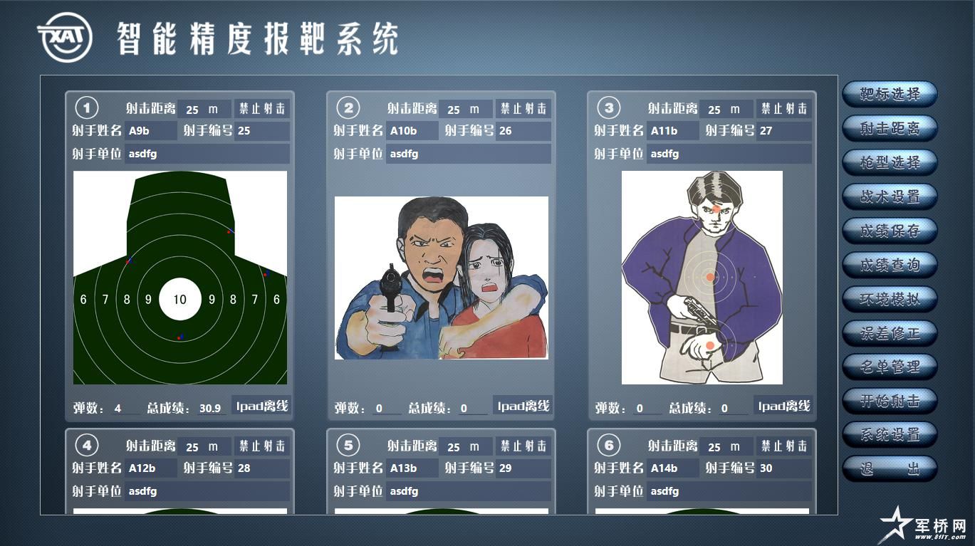 报靶软件系统支持多种模式,包括一般训练、阶段性考核、多种射击方式下的比赛等。软件系统支持定制。