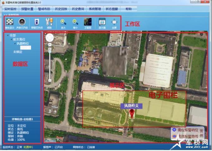 管理官兵可通过电脑客户端(或Web客户端)登陆系统平台,随时查看官兵的位置情况,结合电子地图可查看设备物品信息、官兵轨迹、枪支使用情况、车辆信息等异常点分布位置等,从而实现了对整个军营的信息化、数字化、网络化、图形化的管理,为管理制度的落实及资源管理提供了技术保障。
