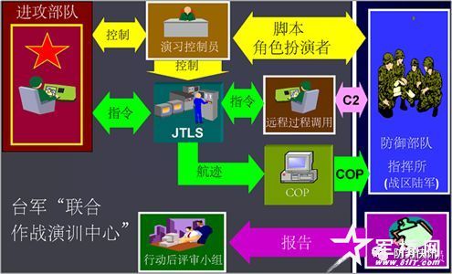据台军“联合作战演训中心”在2015年公开的材料,台军在利用JTLS进行军演时,参与演练的相关单元包括攻击部队、防御部队、演习控制人员、执行人员、观察人员、评审分析人员(如图6所示)。
