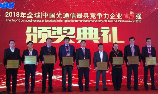 “2018年全球|中国光通信最具竞争力企业10强”评选由网络电信信息研究院、中国通信学会光通信委员会、亚太光通信委员会共同参与,评选专家来自国内通信领域和经济学、管理学、统计学等领域的权威人士,根据参选企业的生产规模、市场表现、产品性能、售后服务、增长速度和企业管理及文化等多种要素指标进行评定,对参选企业的竞争力进行了客观、系统的分析。