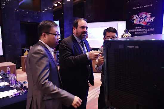 科视高级产品经理Mr. Mike Garrido则着重分享了科视最新的技术和产品。在产品方面,他分别介绍了3DLP和1DLP投影机的产品特点,在技术方面系列分享了科视 BoldColor技术和科视真激光技术的卓越之处。