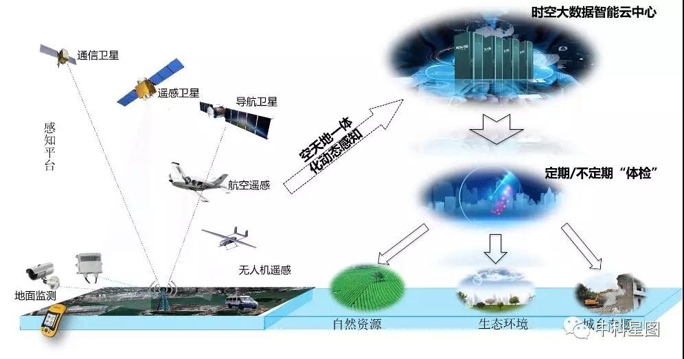 空天地一体化感知新型智慧城市平台的“新”体现在以下三个方面:全时空实时感知:新型智慧城市平台的基础是空天地实时感知网络以及感知网络获取的实时数据。基于中国科学院空天信息研究院数座卫星地面站,能够实时获取卫星观测资料,实时获取高中低不同空间分辨率数据,可以在接到卫星下传数据后的几分钟内给出人们需要的地球物理参数,实现对城乡全域的快速感知。全周期实时监测:在建立全时空实时感知数据体系的基础上,平台建立起“事前-事中-事后”的全生命周期管理系统。基于空天大数据技术建立遥感影像特征库和地表光谱库,为多源多尺度光学遥感数据的特定目标快速发现和城市利用变化自动检测提供数据分析基础,从而实现对城乡问题的快速发现,快速反馈。全要素实时评估:城乡的复杂构成离不开“山、水、林、田、湖、海、草”等基础自然资源要素,而全要素的自然资源也是评价城乡生态环境的关键所在。因此我们基于“全时空实时感知”和“全周期实时监测”实现城乡全要素的实时智能评价是平台的重要目标之一。在此我们建立起“感知—体检—评估—预警—更新”的智能迭代系统是新型智慧城市平台的大“智”所在。