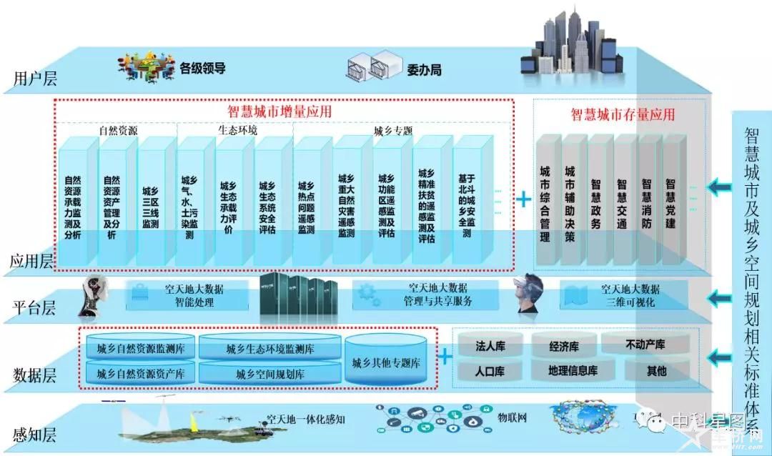 空天地一体化感知新型智慧城市平台如何建设应用层面:空天地一体化感知新型智慧城市平台遵循“增量+存量”的原则,既要建设新型智慧城市应用(自然资源、生态环境、城乡专题等),也要兼容已有成果(存量应用包括智慧政务、智慧交通、智慧消防等)。架构层面:空天地一体化感知新型智慧城市平台采用“平台+数据+应用”模式。GEOVIS产品系列是新型智慧平台建设的基础和核心,在此基础上引接中科院空天信息研究院(下称“空天院”)“中国遥感卫星地面站”实时数据,集成空天院下属中国科学院遥感与数字地球研究所先进算法模型(包括特定目标快速发现、土地利用自动检测等)。正所谓“求之于势,不责于人”,空天院之算法模型和地面接收站网正是新型智慧城市平台之势所在。技术层面:GEOVIS产品系列是新型智慧平台建设的基础和核心,GEOVIS基础平台的三维可视化+云计算+深度学习技术体系,其超强的兼容能力和集成能力为新型智慧城市平台提供了基础和保障。