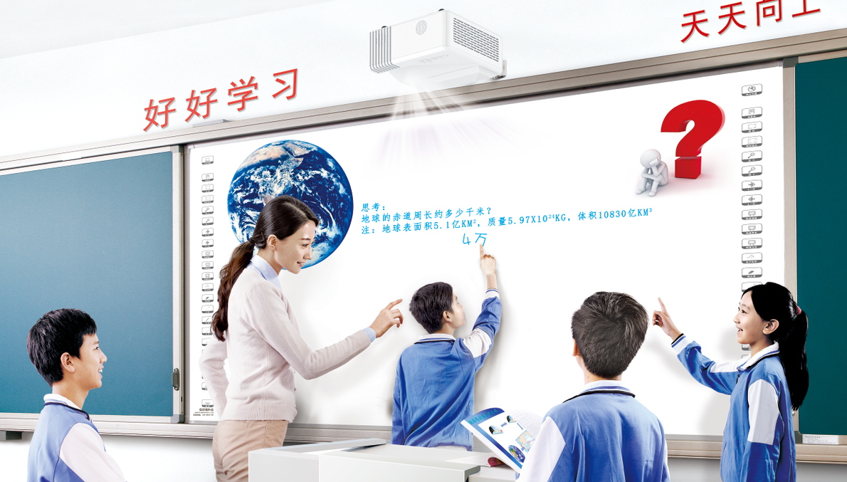 还有一点不得不注意,青少年视力问题已经引起教育部的注意,大屏幕的热量和辐射非常大,对于很多老师而言,长时间对着电脑办公蓝光直射的危害已经非常难受,更别说站在比电脑屏幕大四五倍的大屏幕前板书。而投影光是漫反射光,对人体几乎没有伤害,投影漫反射比液晶屏的直射更护眼,站在100吋的大屏幕前上课也不会有任何压迫感。这或许为投影一体机PK交互一体机又增加了砝码。