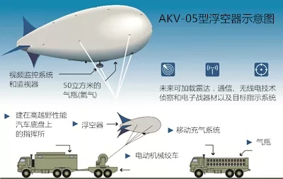 未来,AKV-05型浮空器还将安装其他装置,包括雷达、通信、无线电技术侦察和电子战器材,以及目标指示系统等,从而转变为气象站、通信中继站或雷达站,将发现目标的半径提升至200公里。