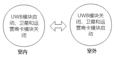 在执勤过程中定位标签可自适应判断目前处于室内还是室外状态;当标签在室内定位区域时,自动采用使用超宽带定位技术进行定位和数据传输,若离开室外区域将启动卫星定位模块进行定位,数据传输采用运营商网络;从而保证室内外一体化定位无缝拼接。