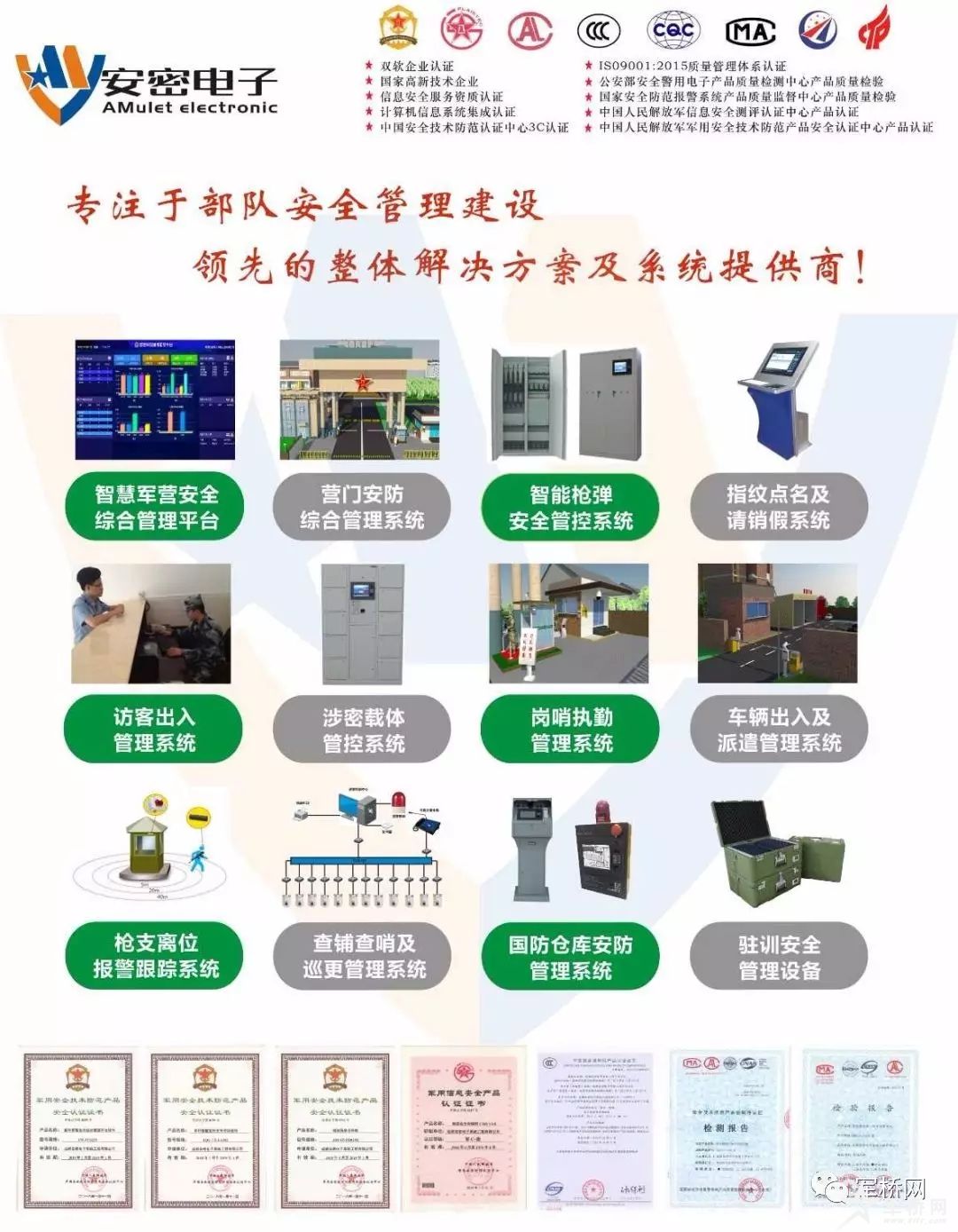 安密电子是一家实力雄厚的集研发、生产和服务于一体的军民融合产品及解决方案提供商。专业从事智慧军营、数字军营、安全军营相关产品及系统,安全管理产品的研发、生产、系统集成及应用的高科技企业,公司重点致力于部队信息化建设及应用推广,注重高新技术及产品在军事领域内的应用和发展,专注服务国防现代化建设。
