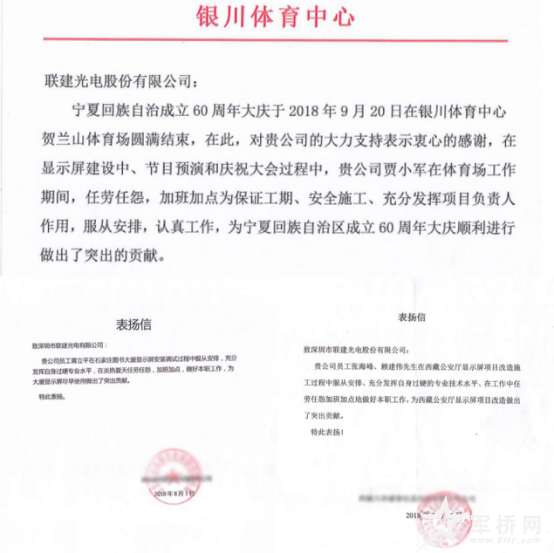正是这份执着与坚守,让联建光电十余年来的努力得到了市场的认可,公司的产品和服务更多受到客户的赞誉和肯定;同时也斩获了多项社会殊荣,包括“国家级高新技术企业”“深圳市知名品牌”、“广东省守合同重信用”,“中国光电行影响力企业”、”2018深圳500强企业“等等。同时,公司已经连续三年荣获由中国质量检验协会颁发的“全国LED显示屏行业质量领先品牌”、“全国质量诚信标杆典型企业”、“全国质量检验合格产品”“全国质量信用先进企业”等证书。这些荣誉既是对联建光电的肯定,也是对未来联建光电追求更高品质的鞭策与激励。