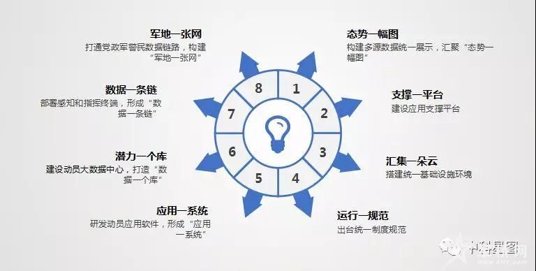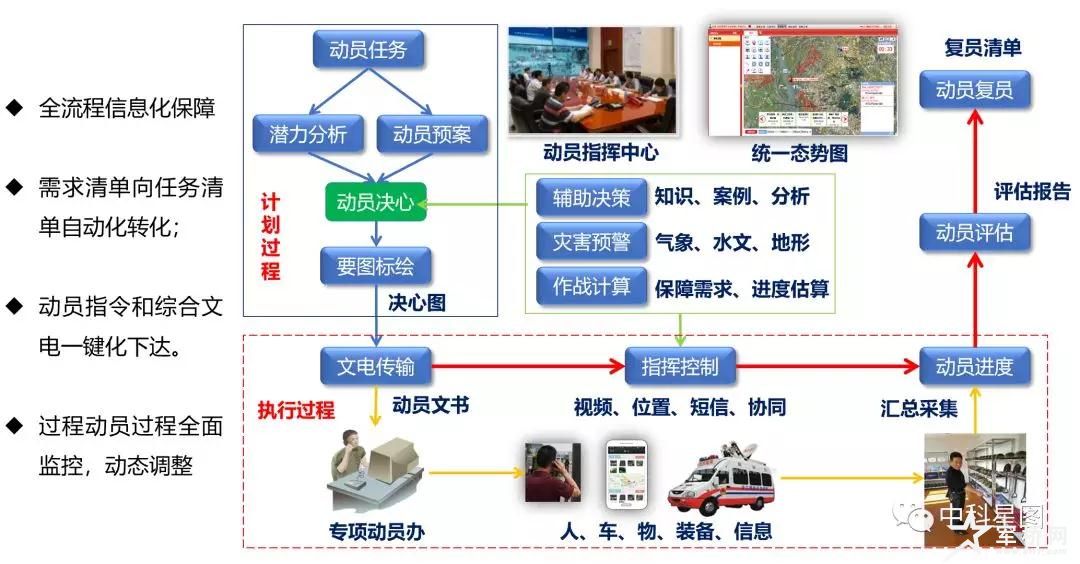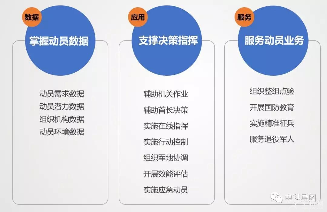 该平台围绕国防动员“潜力全面感知,征召精准实时,协同智能管控”的目标,部署智能采集、智能分析、智能指挥、智能管控、演训考核、国防教育等应用,涵盖政治动员、人武动员、经济动员、人防动员、交通动员、信息动员、科技动员、民政动员、医疗卫生动员等9大领域,对动员需求、潜力采集、潜力分析、动员计划、动员决策、动员执行、动员复员的全过程管理和指挥控制。