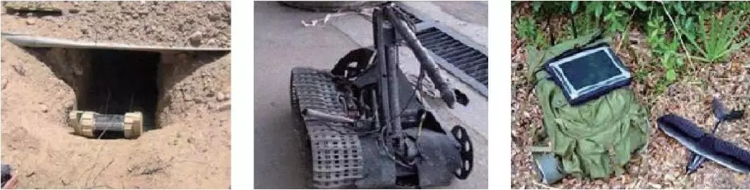 无人平台是无人作战系统的重要组成部分,可以协助作战人员、或者独立参与作战,可执行侦察、后勤运输甚至火力支援等军事任务,主要从事的任务性质为单调、枯燥、肮脏的工作,并且没有人类士兵的负面情绪的影响。在海湾战争后,大量的无人平台被广泛应用于现代化战场中,担负着越来越重要的角色。图1给出了在伊拉克战场中应用的机器人,包括在战场中被破坏的排爆机器人以及小型抛投无人机。军用地面平台具有较好的隐蔽性、快速机动能力以及较强的战场适应能力,与传统武器可形成战场的不均衡态势,将引发军队组织结构、体制及战术的变化。