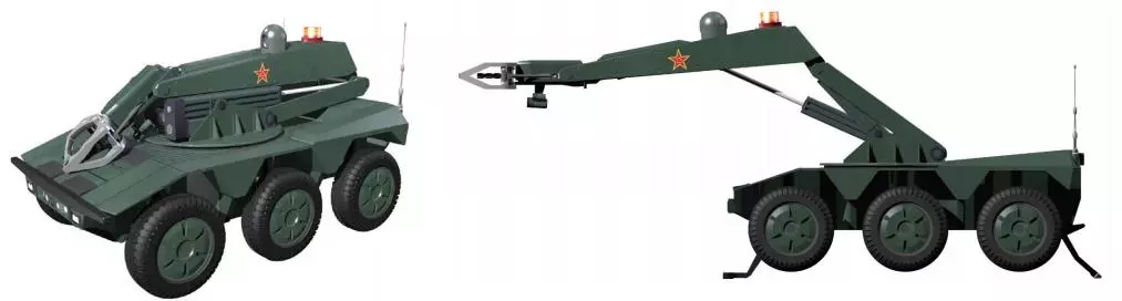 中国航天科工飞航技术研究院研制的500kg级别多用途小型无人平台采用轮毂电机的驱动方案,实现6轮行走机构模块化设计,构型为六轮独立悬挂与四轮独立转向方式,在非结构化环境中具有良好的机动性能与通过性能,最高行驶速度达到30km/h。该型平台具有较小的体积与较高的承载能力,可搭配大型液压机械臂( 末端负载70kg以上)、遥控武器站等上装载荷,采用远程遥控方式,可在城市环境以及野外环境中执行打击、救援、危险物排除等任务。