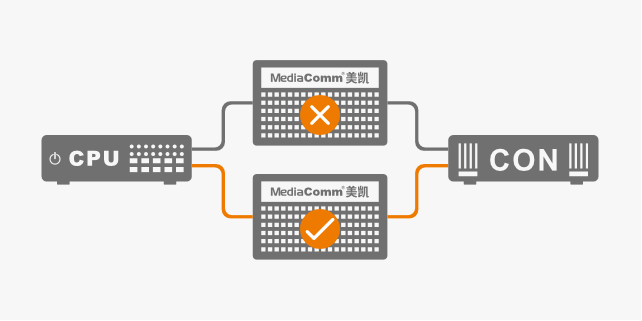 现代联合作战指挥中心对作战指挥系统有长时间无中断运行、发生故障不影响系统功能同时更换维护快速简便等建设需求,MediaComm美凯推出先进的光纤KVM主机双控制板卡技术和主备主机自动热跳转技术。双控制板卡技术通过在光纤KVM系统主机内部署一主一副两张控制板卡,主备主机自动热跳转技术通过在建设指挥系统链路同时接入主用主机和备用主机,作战指挥系统日常操作时两张板卡、两台主机同时运行,当出现意外情况,系统发生故障时,控制信号可以从一张板卡(/主用主机)无缝自动跳转至另一张板卡(/备用主机),期间不影响系统正常运行,以实现系统的无停机持续性运行。同时,由于光纤KVM主机支持热拔插的特性,维护人员不需要中断系统运行就能直接更换出现故障的板卡或者维修故障主机,完成后控制信号再自动跳转,不影响关键任务的程序,维护过程简单、便捷、高效。