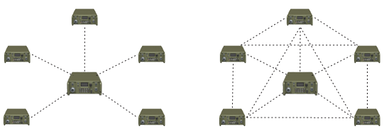 短波电台的组网方式主要有两种,一种为星型结构,另一种为网状结构。 星型结构:集中调度,广播系统。适合语音链路,上传下达;网状结构:相互服务,广泛兼容。适合数据交换,多网互通。