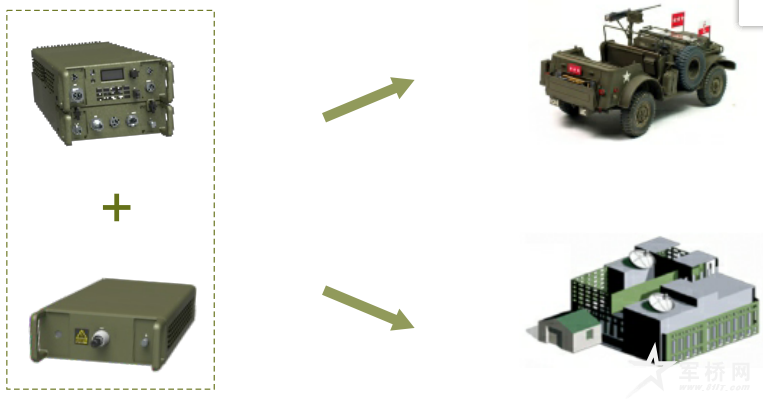 背负电台+功放+自动天线调谐器集成使用,通信距离扩 大上千公里,可以覆盖更大的范围。可以快速集成安装 在车载、机载、船载等移动平台,同时也可固定安装在战 场指挥所,扩大战场通信指挥范围。