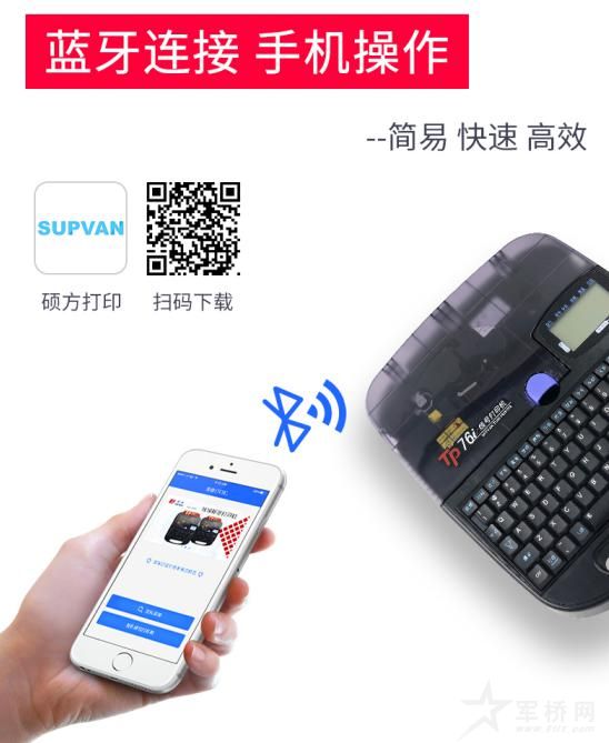 硕方首款蓝牙线号机TP76i集自带键盘、PC端操作软件、手机APP三种操作模式于一体,适应多场景打印需求:施工现场自带键盘编辑打印内容、工厂车间使用电脑连接数据库批量打印、手机APP随时编辑内容打印。